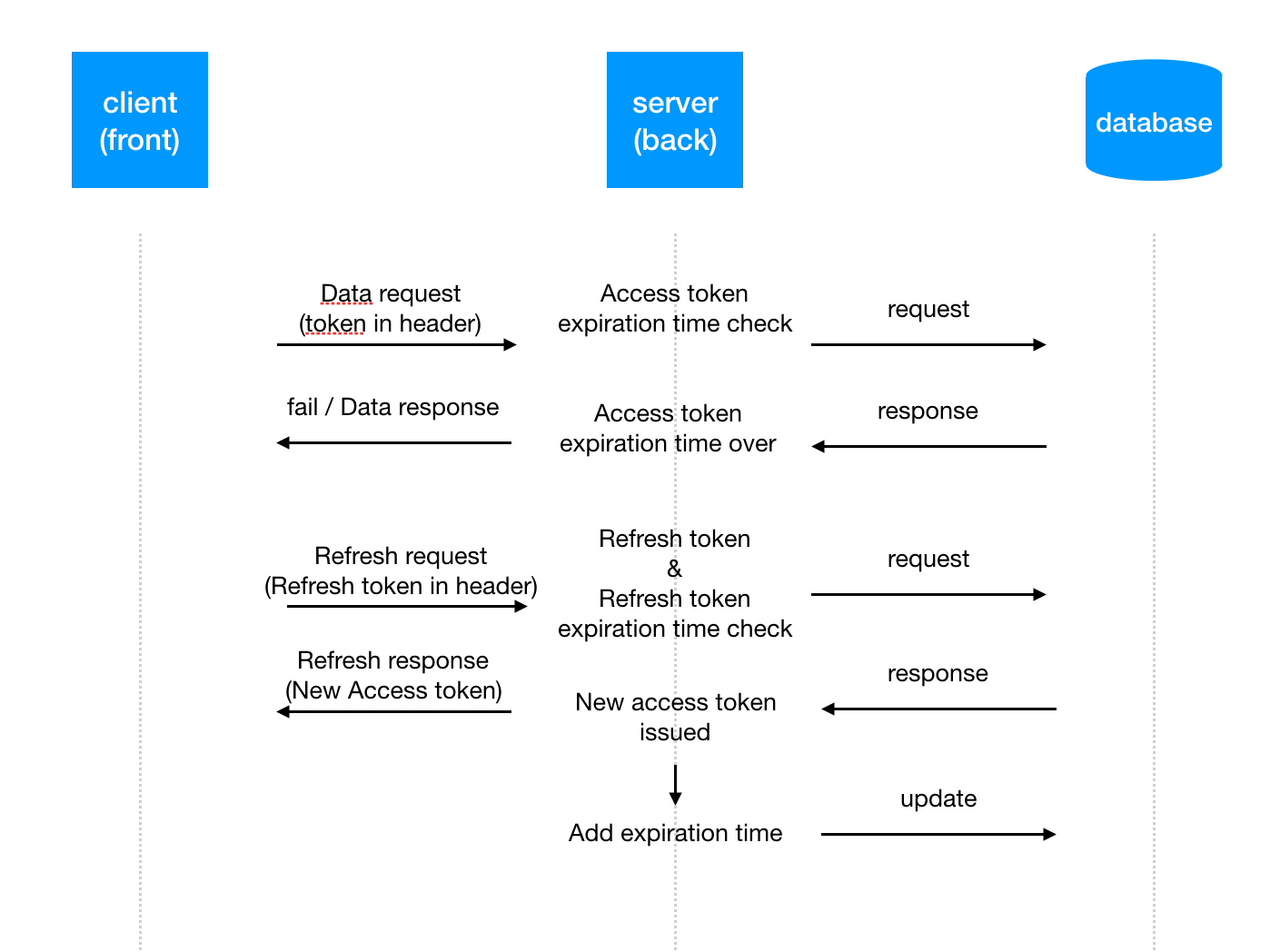* Access token의 만료시간(expiration time)은 짧을수록 보안에 좋습니다. front에서 token 저장 시 보안에 신경 써야 합니다.