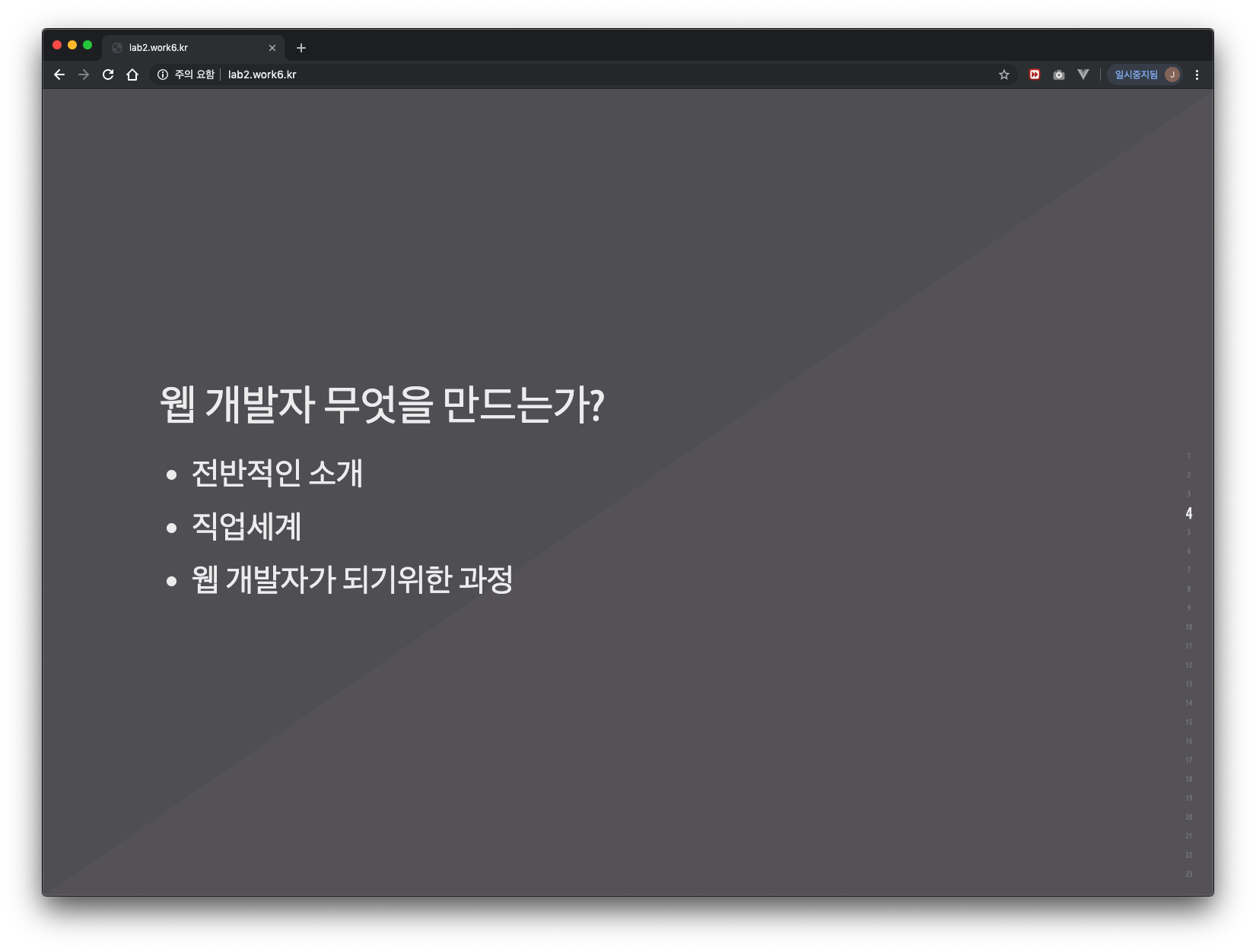 강의를 진행해본 결과 중학생들에게 짧은 시간 안에 웹 개발자라 진로를 함축하여 강의하기란 쉽지 않았습니다.
