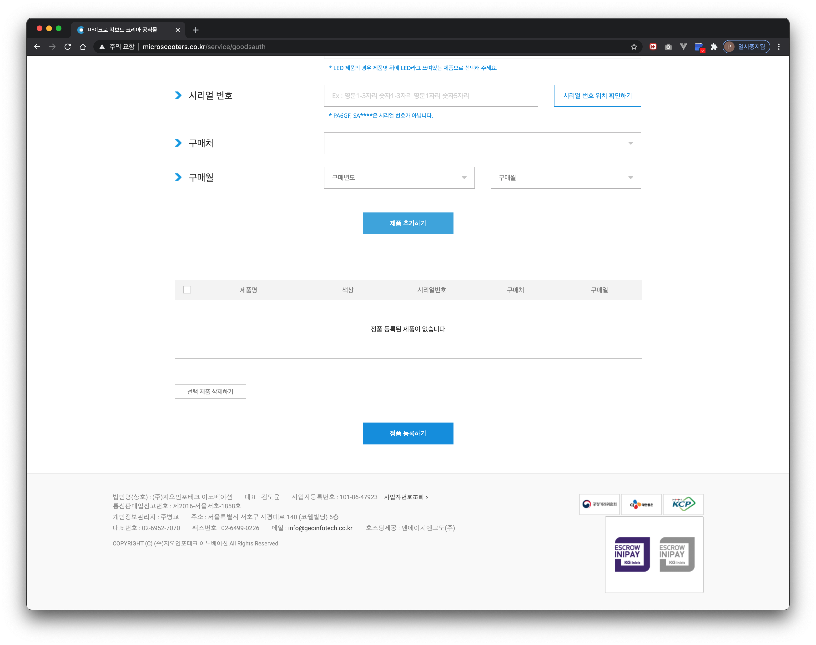 정품등록 기능 개발