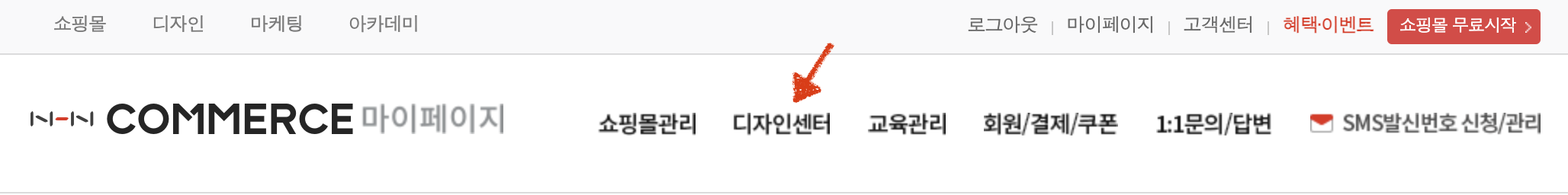 3. 아래와 같은 메뉴가 보인다면 디자인센터로 이동 합니다.