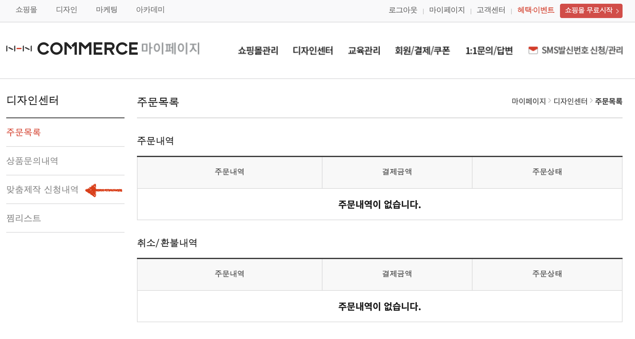 4. 좌측 메뉴에서 맞춤제작 신청내역으로 이동 합니다.